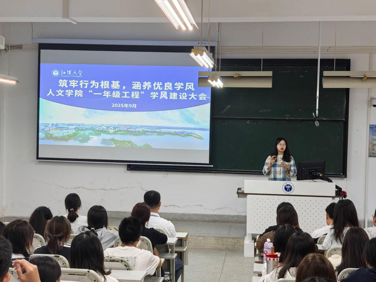 为强化 “一年级工程”育人实效,凝聚学风建设合力。9月22日,人文学院在J02A101教室召开2025级学风建设大会。辅导员李锐、王梦莹主持会议,2025级全体学生干部参会。