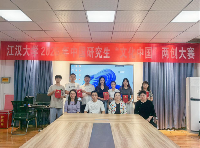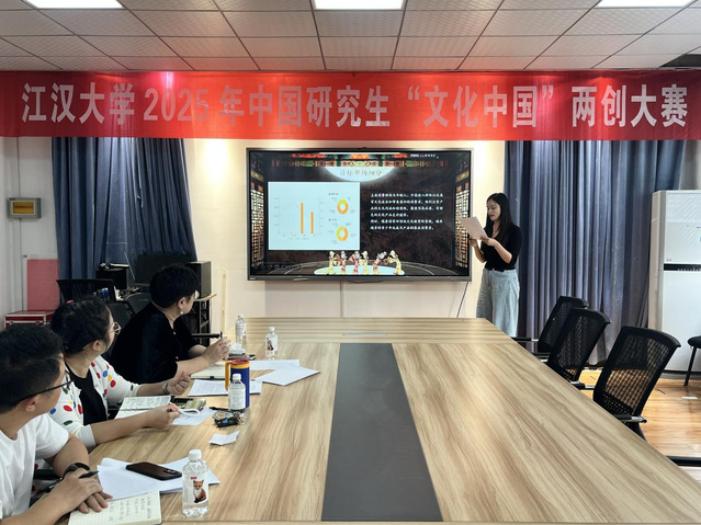 2025年9月29日,中国研究生“文化中国”两创大赛江汉大学校赛在J02B402教室成功举办。本次比赛以“赓续中华文脉、坚定文化自信”为宗旨,围绕五大特色赛题展开角逐,吸引全校多学科研究生团队深度参与,彰显传统文化创造性转化与创新性发展的青春力量。