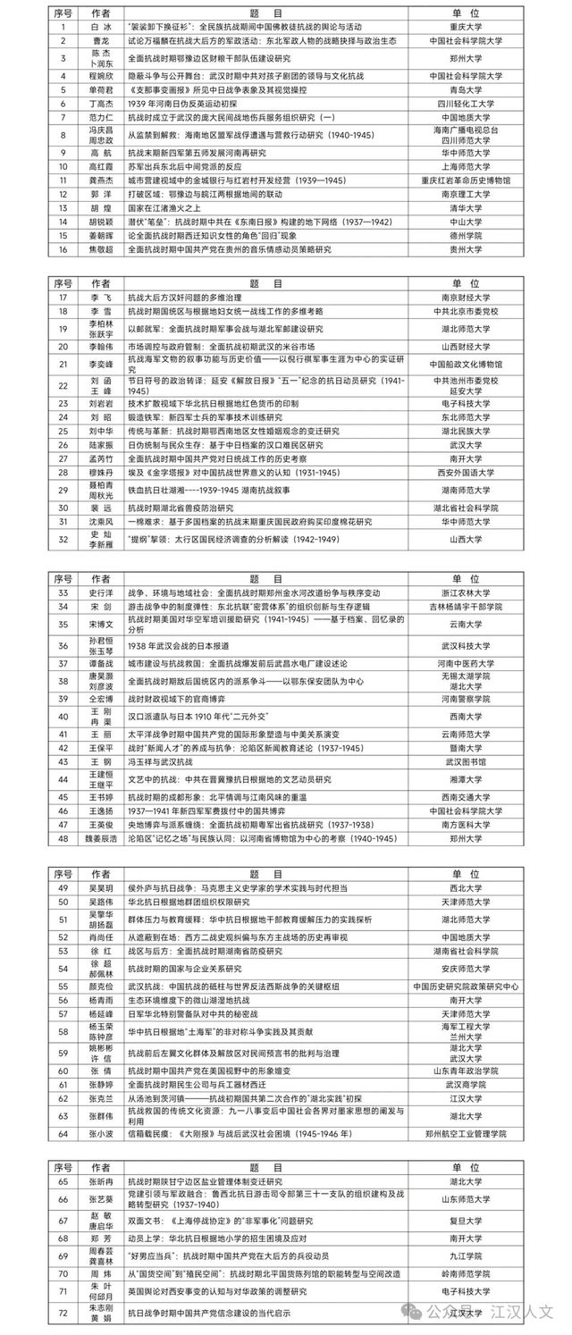 附:区域、国家和全球视野下的武汉抗战与世界反法西斯战争学术研讨会入选论文名单