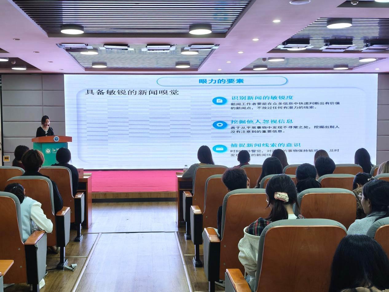 “新闻的温度,源于对现场的深度;文字的力量,来自对细节的洞察。”人文学院团委学生会新宣部副部长张妍冰以“脚力、眼力、脑力、笔力”为核心,结合学院过往“社会实践”“文化节”等宣传案例,系统分享新闻写作实战经验,为团干构建“从素材到精品”的写作逻辑框架。