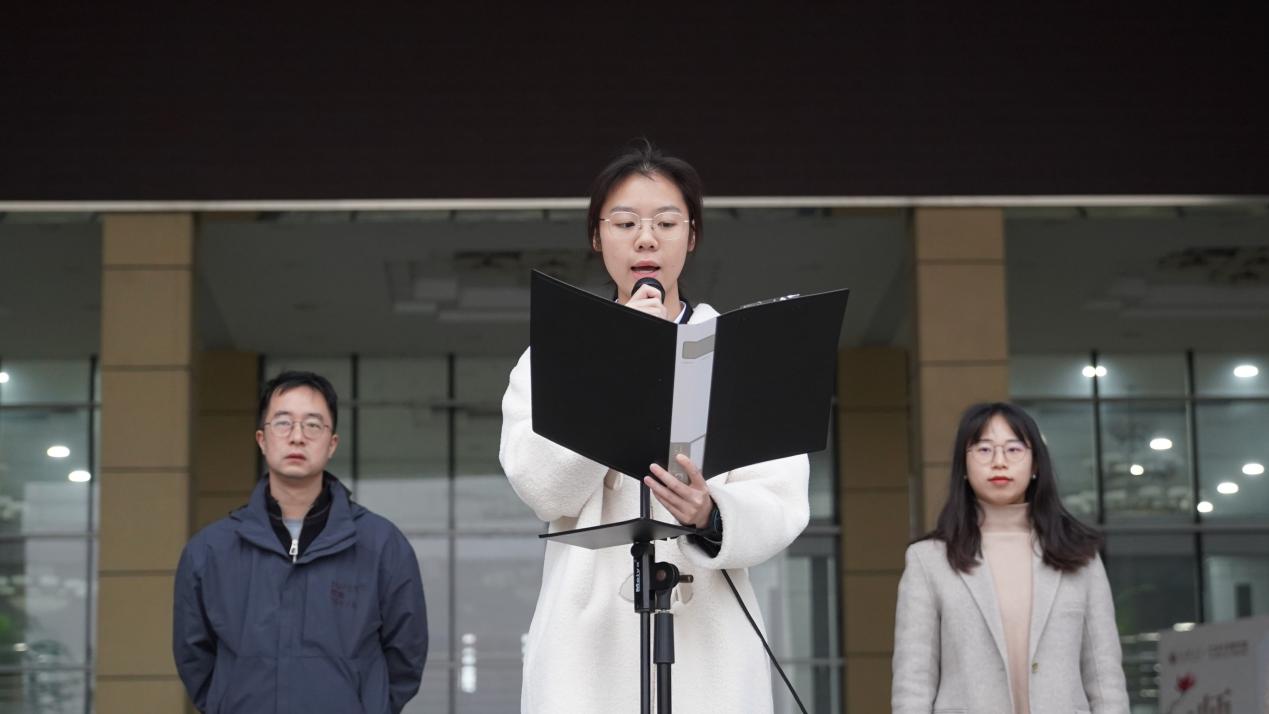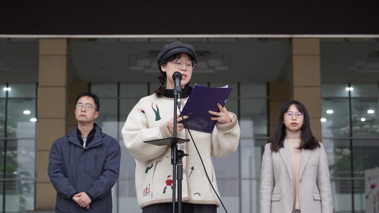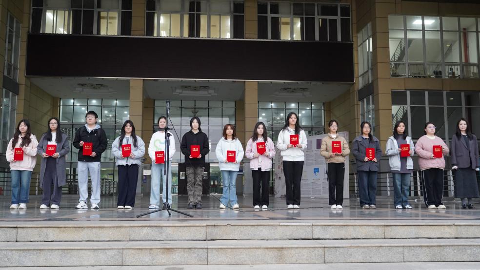 省青年马克思主义者培养工程第十二期学员、2023级广告学本科生张清聆进行国旗下演讲,分享了青马培训与基层实践经历。她讲述了在黄石阳新县王英镇参与仙岛湖巡湖防汛的故事,诠释了“守护绿水青山”的实干内涵。她表示,青马工程教会自己“向下扎根”的人生态度,返校后更以“把小事做好,把大事做实”的标准投入学习生活,传递了青年在实践中成长的鲜活力量。