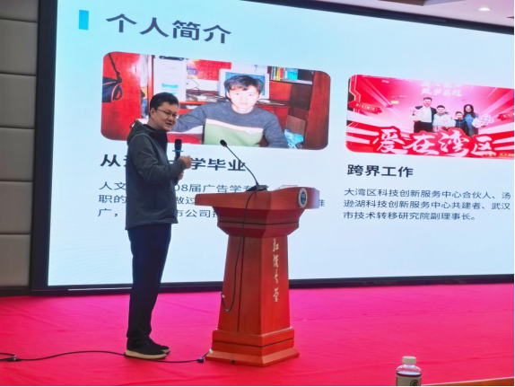 邢宝伟以“跨界成长”为主线,深情回顾了自己从江大校园出发,一步步迈向科技创新服务前沿的奋斗历程。作为广告学专业毕业生,他始终怀揣创业梦想,即便面对求职迷茫与现实挑战也未曾动摇信念。他曾深耕品牌策划与市场推广领域,在多家企业历练中积累了丰富的实战经验;在负责上市公司人才培养工作期间,系统构建了一套模式化人才培育体系,为其日后投身科技成果转化奠定了坚实基础。