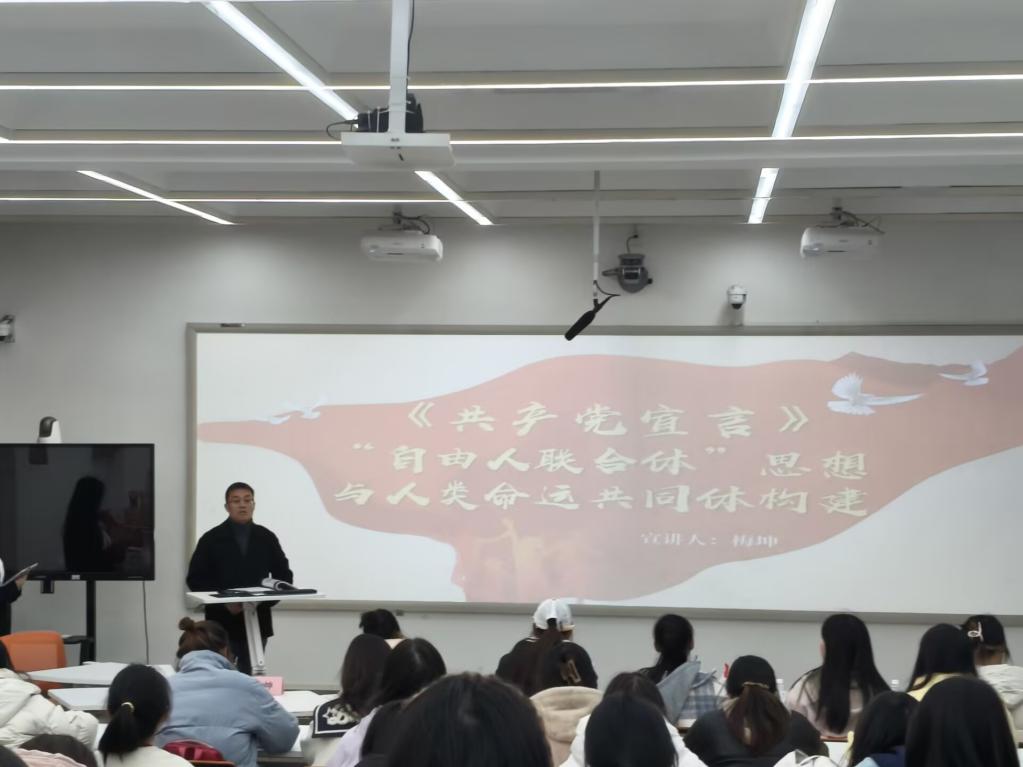 11月19日,院党委副书记梅坤老师在J02A108带领团干研读《共产党宣言》,结合时代背景深化理论认知、拓宽国际视野,让理论学习更具温度;通过互动交流检验学习实效,勉励团干将理论知识转化为工作动力,切实做到“知行合一”,强化政治素养与责任担当。