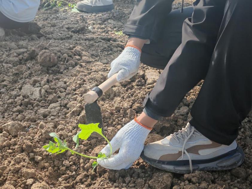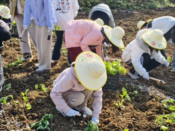 理论学习过后,实战环节正式拉开帷幕。同学们戴上草帽、拿起锄头,以班级为单位分组协作,迅速投入到油菜定植工作中。翻整土地时的专注用力、挑选苗株时的细心比对、定植栽种时的精准把控、覆土压实后的认真检查,大家分工明确、配合默契。尽管初冬微寒,田间泥土沾湿鞋袜,但同学们热情高涨、干劲十足,锄头与泥土的碰撞声、相互协作的提醒声、完成栽种后的欢笑声,汇成了充满活力的劳动交响曲。从起初的动作生疏到逐渐熟练掌握技巧,同学们在亲手劳作中真切体会到“一粥一饭,当思来之不易”的深刻内涵,更感受到劳动带来的充实与成就感。
