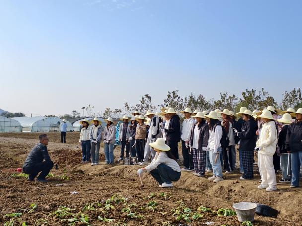 2025年11月24日上午,人文学院2025级学生在辅导员的带领下赴江汉大学劳动教育实践基地开展油菜苗定植劳动教育实践活动。作为学院“一年级工程”的组成部分,此次活动以农事体验为抓手,将劳动技能训练、知识科普与价值引领深度融合,助力学生在劳动中锤炼意志、增长才干。