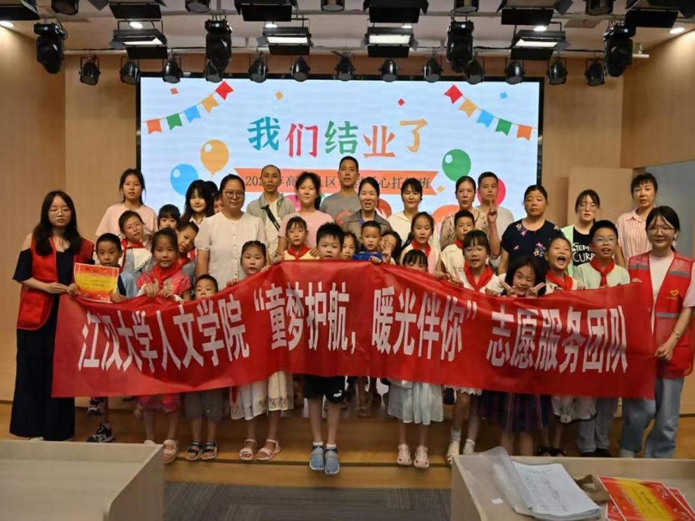 2.入选2025年“爱心托管班”七彩假期志愿服务项目10项:人文学院“超能力实验室”志愿服务队携手江大园社区,通过情绪认知、语言启蒙、艺术创作、健康科普、科技探索、文化传承等多元主题活动,让孩子们在“玩中学、学中悟”;人文学院光影未来非遗传承服务队走进万科金域蓝湾社区,以皮影戏为切入点,开启了一场传统文化与现代教育交融的实践之旅;人文学院“古韵新承”历史非遗传承服务队来到佳泰社区,以非遗漆画团扇手工实践活动带领社区青少年在沉浸式体验中触摸传统工艺的温度;人文学院繁星织梦志愿团以“探索绿色能源,放飞科学梦想”为主题,让辖区青少年在动手实践中触摸科技温度;人文学院巧手童心志愿服务队与武汉市洪山区洪山街道景江社区深度联动,依托人文学院专业特色,精心设计“知识+实践+素养”的多元课程体系,引导孩子们养成良好习惯;人文学院不啻微芒志愿队前往石桥社区从图书整理、青少年课业辅导、商铺“门前三包”宣传以及主题绘画等方面开展“童创美好家园”多维社会实践活动;人文学院暖阳护航志愿服务队为青少年带来了科普实践活动,让“零碳社区”从抽象理念落地为贴合江大园社区实际的行动蓝图;人文学院“童梦护航,暖光伴你”志愿服务团队在高湖社区开展依托专业优势,串联非遗传承、地域文化、科学探索与情绪教育等内容,让孩子们收获惊喜与蜕变;人文学院“微光童行,为爱守护”志愿服务队以贴近儿童的方式,将红色记忆、文化根脉、心灵关怀与科学好奇融入日常,为孩子们的成长添注温暖力量;人文学院青藤志愿服务团队前往十堰市竹溪县汇湾镇中心学校,将生活常识、安全知识、心理健康知识、专业知识等融进课堂里,拓宽偏远地区儿童的知识面。