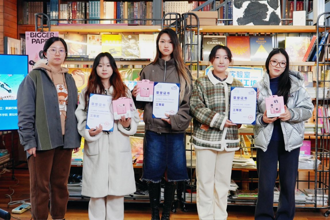 (通讯员 杜美琳)12月18日,由凌悦数字科技联合江汉大学、湖北美院、武汉理工等高校打造的“AI影视创作”主题沙龙暨首届高校AI影视创作大赛颁奖盛典在武昌视觉书屋举行,江汉大学人文学院广告学子不负众望,在微视频、微短剧赛道双双获奖,廖冬妮老师带队赴现场领奖,尽显专业硬实力!