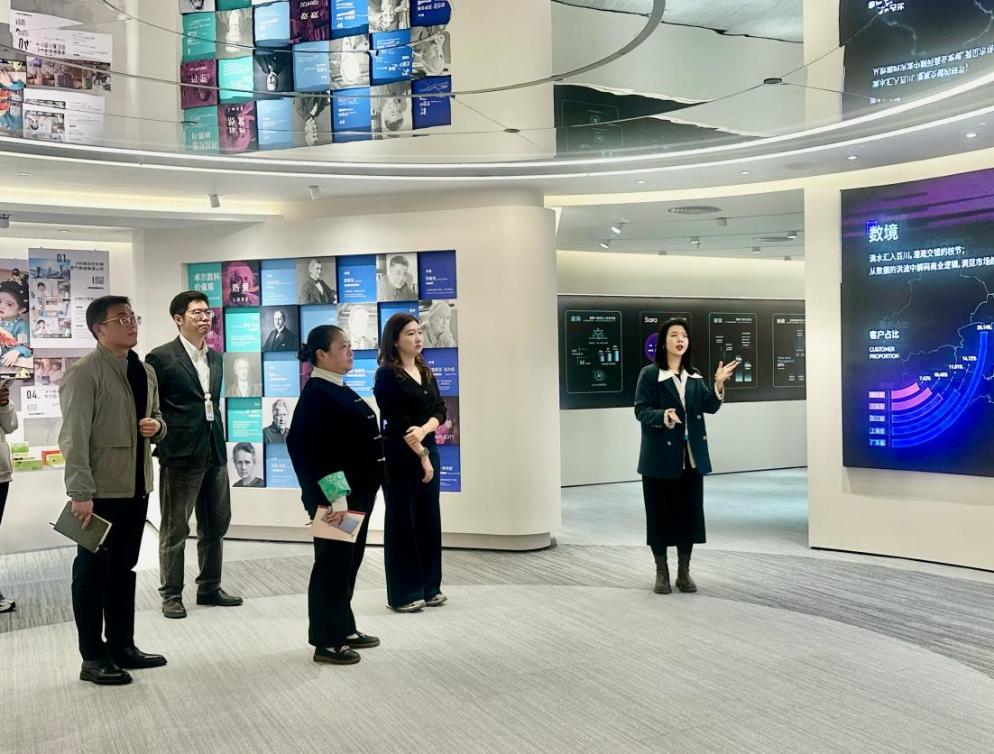 向悦副校长一行在卓尔数科副总裁兼COO、人文学院2015届校友张书瑜的陪同下,实地参观了公司发展展厅、数智化营销产品、办公环境,深入了解了卓尔数科的发展历程,品牌合作故事,以及在数字商业和数字科技领域的最新发展成果与行业前沿动态。