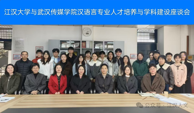 为深化汉语言文学专业内涵建设,共同探索人才培养与学科发展新路径,12月11日下午,武汉传媒学院文学与艺术学院副院长陶立军教授率师生代表团一行到访江汉大学人文学院,开展专题调研与座谈交流。我院对代表团的到来表示热烈欢迎,并于J02B402会议室举行“汉语言文学专业人才培养与学科建设座谈会”。