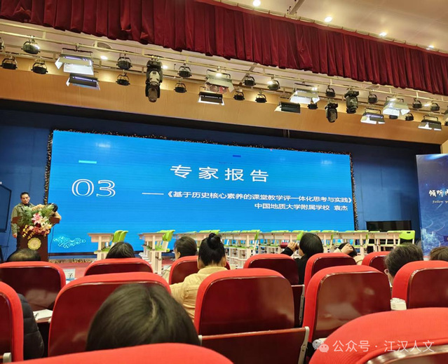 中国地质大学附属学校袁杰校长以《基于历史核心素养的课堂教学评一体化思考与实践》为题进行报告,围绕“核心素养导向的教学设计” 展开深入分享。他明确教、学、评一体化的核心是锚定统一教学目标,同时细化了教学目标的撰写方法,既反对机械套用核心素养维度,也拒绝生硬拼接内容要求,要结合核心素养内涵与具体表现来整合设计,还强调需依据学业质量标准,将各素养的水平梯度转化为可落地的教学指引。袁杰校长的报告立足历史核心素养培育,为教学评一体化的落地提供了兼具理论高度与实践操作性的路径,推动历史课堂从知识传授向素养提升转型。