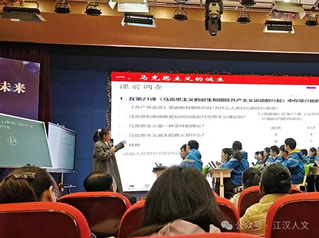 桂晓蓓老师以《马克思主义的诞生和国际共产主义运动的兴起》为题进行公开授课,她紧扣“真理的味道” 主线,结合资料包与 AI 工具,引领学生深度探索马克思主义的思想伟力。她以学生讲述陈望道翻译《共产党宣言》时 “蘸墨汁吃粽子,说真理的味道非常甜” 的故事为导入,自然地唤起学生对 “真理之味” 的好奇与讨论,顺势引出 “真理因何而生”的核心议题。随后依托教材、智慧中小学平台与资料包,以 “真理因何而生 — 真理为何为甘 — 真理凭何行远” 为逻辑脉络,层层深入展开教学。她坚持以学生为中心,引导学生通过阅读教材思考马克思主义诞生的背景,组织小组合作探讨马克思主义诞生的意义。教学过程中启用学生评价量表,从合作参与度、逻辑表达能力、史料运用程度三个维度出发,完成过程性评价,让学生的学习效果可视化。借助豆包 AI 对学生的观点进行即时评价,同时提问学生是否赞同AI的评价,引导学生辩证看待 AI 的答案。她通过结合巴黎公社运动的案例让学生思考工人运动“新在哪里”,认识到真理的力量一直强大。课堂最后以阅读著作,撰写 “马克思、恩格斯的故事” 为延伸任务,实现学生 “知理论— 悟价值 — 传精神” 的认知闭环,既落实了唯物史观、历史解释等历史学科核心素养,也厚植了学生对科学理论的认同与追求真理的意识。