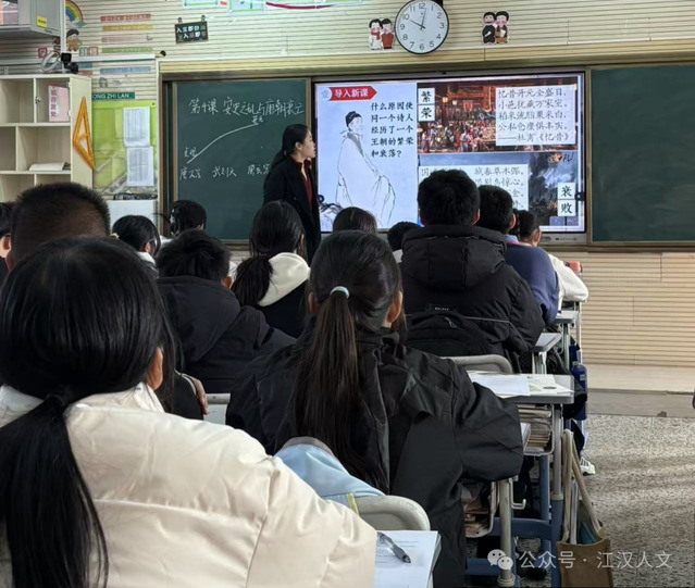 “躬行践远始玉成,行而不辍终致远。”2025 年 12 月 18 日,江汉大学人文学院学科教学(历史)专业领域负责人刘贵华及硕士研究生导师邓正兵、方秋梅、谌畅携 2025 级学科历史研究生,共赴武汉经济技术开发区官士墩中学,开展教学研究活动,观摩 2024 级硕士研究生郭嘉乐、陈燕妮两位研究生的实习汇报课。活动现场,武汉经济技术开发区官士墩中学李校长及诸位老师对江汉大学师生的到来表示热烈欢迎。该校创新工作室负责人任艳丽老师作为两位研究生的实习指导老师,全程统筹协调、细致指导,为活动的顺利开展提供了有力保障。