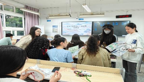 近日,华言对外汉语志愿者服务团队举办“刺绣中国”非遗体验活动,留学生们相聚一堂,以针为笔、以线为色,在指尖穿梭中沉浸式邂逅中华刺绣的非遗之美。